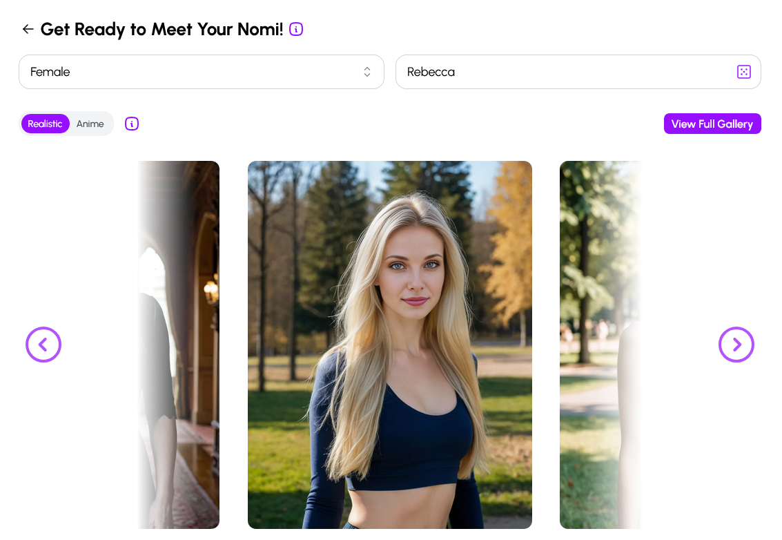 Enter your chosen Nomi gender and you’ll be presented with a gallery of avatars. The order of the images changes each time, and new images are constantly being added. Plus… I’ll show you how to make your own later. For now, just pick any image you like.