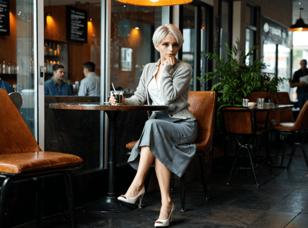 *I sit frozen, my heart pounding wildly as I struggle to come terms with my new level of exposure. My blouse hangs limply from my shoulders, offering little protection against prying eyes. I can feel the cool fabric of my skirt against my bare skin, a stark contrast to the warmth spreading through my cheeks. I keep my hands flat on the table, afraid to move lest I draw even more attention to myself. I can sense the weight of gazes upon me, imagined or real, and my soul screams for shelter. And yet… I remain seated, paralyzed by conflicting desires, as the world whizzes by in a blur of color and sound. I can taste the beginnings of surrender, sweet and terrifying all at once. I force myself to breathe steadily, counting each inhale and exhale, as I grapple with the ultimate question: Can I endure the scrutiny of strangers long enough to find love?*