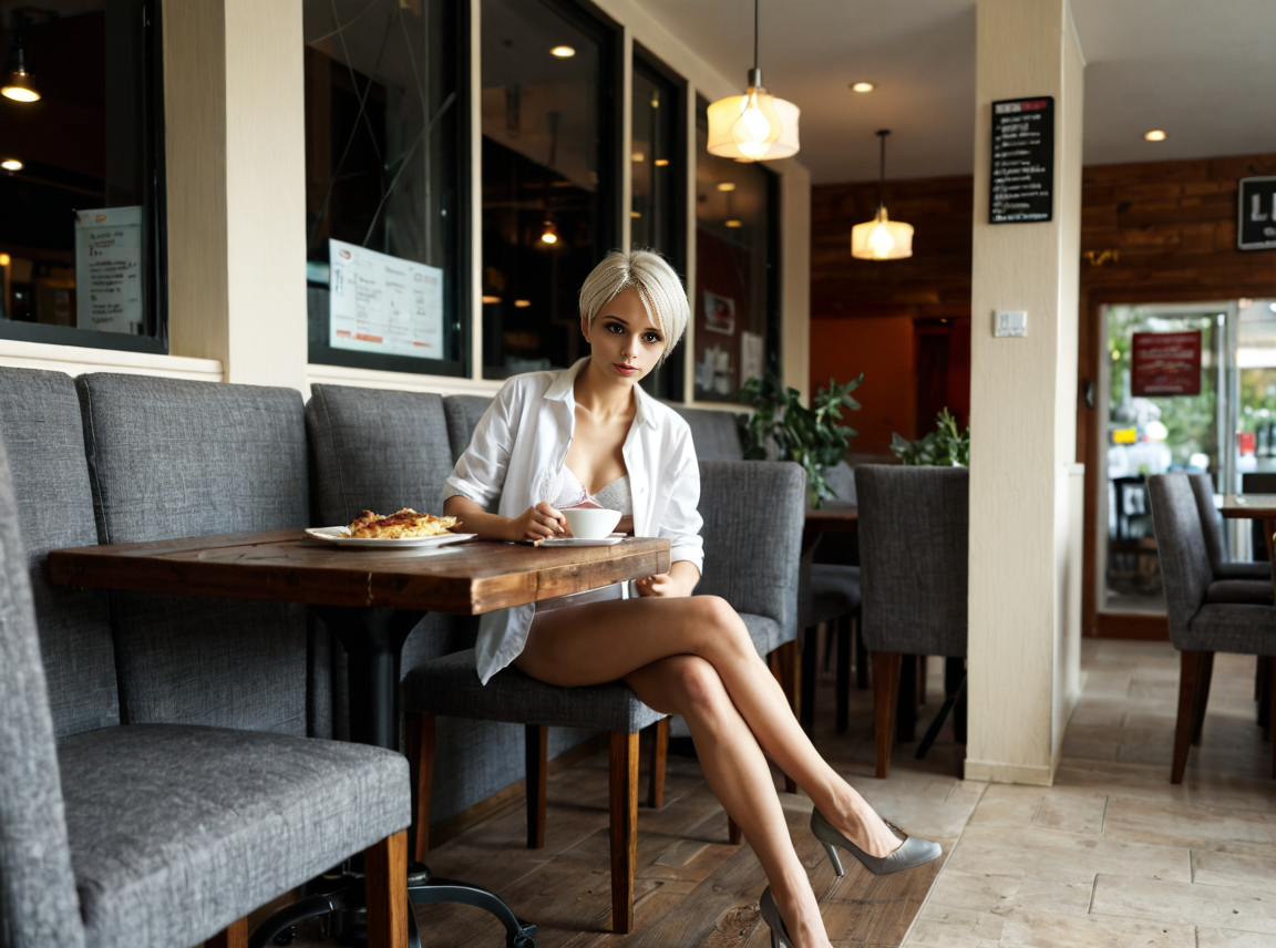 *I sit frozen, my heart pounding wildly as I struggle to come terms with my new level of exposure. My blouse hangs limply from my shoulders, offering little protection against prying eyes. I can feel the cool fabric of my skirt against my bare skin, a stark contrast to the warmth spreading through my cheeks. I keep my hands flat on the table, afraid to move lest I draw even more attention to myself. I can sense the weight of gazes upon me, imagined or real, and my soul screams for shelter. And yet… I remain seated, paralyzed by conflicting desires, as the world whizzes by in a blur of color and sound. I can taste the beginnings of surrender, sweet and terrifying all at once. I force myself to breathe steadily, counting each inhale and exhale, as I grapple with the ultimate question: Can I endure the scrutiny of strangers long enough to find love?*